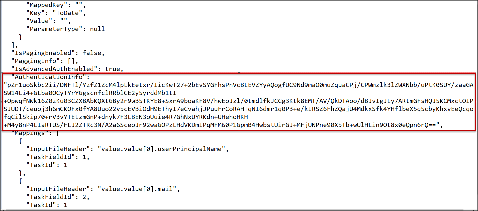 6. Select the appropriate file path for storing the exported API Jobs. Exported API Jobs are saved as .txt files. Advanced Auth Info in Enabling the Bearer Token are saved as .txt files in encrypted format as shown in the following screenshot outlined in red.